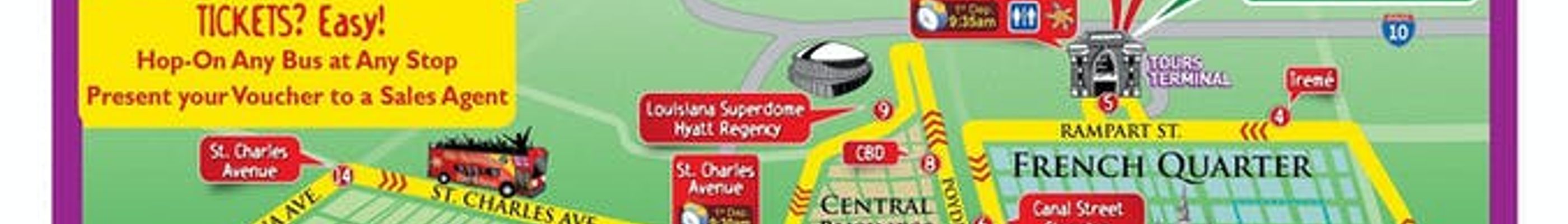 Vouchers must be exchanged for a City Sightseeing time-stamped ticket at Jackson Square (stop #1) or Basin St. Station (stop #5). You can board at any City Sightseeing stop with a paper voucher and exchange it along the way for a time-stamped ticket